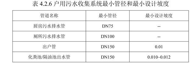 4.2.6 采用重力收集的戶用污水收集管道的設計,應符合下列規(guī)定: