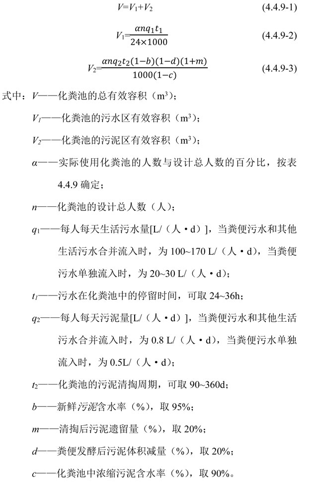 4.4.9化糞池的有效容積,宜按下列公式計算: