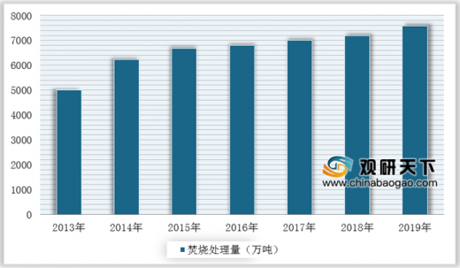 與發(fā)達國家無害化處理率相比,我國生活垃圾無害化處理水平仍然存在較大發(fā)展空間。根據《“十三五”全國城鎮(zhèn)生活垃圾無害化處理設施建設規(guī)劃》,到2020年底,直轄市、計劃單列市和省會城市(建成區(qū))生活垃圾無害化處理率將達到100%;其他設市城市生活垃圾無害化處理率達到95%以上,縣城(建成區(qū))生活垃圾無害化處理率達到80%以上,建制鎮(zhèn)生活垃圾無害化處理率達到70%以上,特殊困難地區(qū)可適當放寬。隨著城市生活垃圾“減量化、資源化、無害化”處理需求日益增長,我國垃圾焚燒處理近年來發(fā)展迅速。數(shù)據顯示,截止到2019年底,我國擁有城市生活垃圾焚燒發(fā)電項目共278個,垃圾焚燒處理率提升至35.30%;年垃圾焚燒處理量達到7589萬噸,同比增長2.86%。△2013-2019年我國城市生活垃圾焚燒處理量