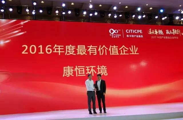本屆年會(huì)以“追求卓越、贏在執(zhí)行” 為主題,中信產(chǎn)業(yè)基金董事長劉樂飛、總裁田宇分別發(fā)表主旨演講??岛悱h(huán)境董事長兼CEO龍吉生博士發(fā)表獲獎(jiǎng)感言時(shí)表示 : "我很榮幸代表康恒環(huán)境領(lǐng)取‘2016年度最有價(jià)值企業(yè)’獎(jiǎng),這個(gè)榮譽(yù),我將獻(xiàn)給康恒環(huán)境的管理團(tuán)隊(duì)和所有康恒環(huán)境的員工,感謝所有支持康恒環(huán)境的中信產(chǎn)業(yè)基金的領(lǐng)導(dǎo),未來,康恒環(huán)境將秉承‘誠信、勤儉,敬業(yè)、責(zé)任,團(tuán)隊(duì)、創(chuàng)新’的企業(yè)價(jià)值觀,牢記創(chuàng)造‘更潔凈更友好的生活環(huán)境’的企業(yè)使命,早日將康恒環(huán)境打造為 '跨世紀(jì)的全球城市固廢綜合治理行業(yè)領(lǐng)跑者' ”。