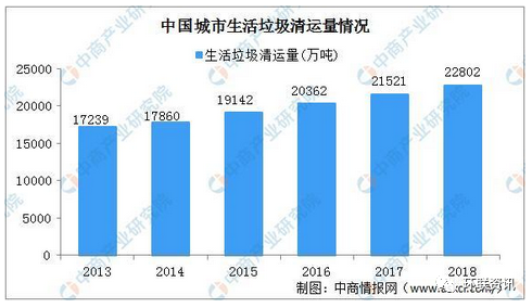 龐大的生活垃圾量為清運也帶來增長。近年來,國家相關部門及各城市紛紛加大治理力度,加強對生活垃圾的清運力度。2018年全國城市生活垃圾清運量22802萬噸,同比增長6%。