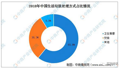 我國生活垃圾無害化處理的方式主要有三種:衛(wèi)生填埋、焚燒和其他,目前仍以衛(wèi)生填埋為主。據(jù)住建部發(fā)布的《2018中國城市建設統(tǒng)計年鑒》,2018年生活垃圾衛(wèi)生填埋663萬噸,占據(jù)了我國生活垃圾處理的60.8%;其次是生活垃圾焚燒處理331萬噸,占30.3%。