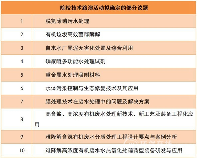 意識到這一點(diǎn),為使業(yè)內(nèi)人士明確當(dāng)下廢水零排放相關(guān)技術(shù)的研究方向,2020院校技術(shù)路演活動(dòng)擬定了10大議題,將圍繞廢水零排放進(jìn)行了廣泛的交流和探討,為水處理高質(zhì)量轉(zhuǎn)型升級創(chuàng)造有利條件。具體如下: