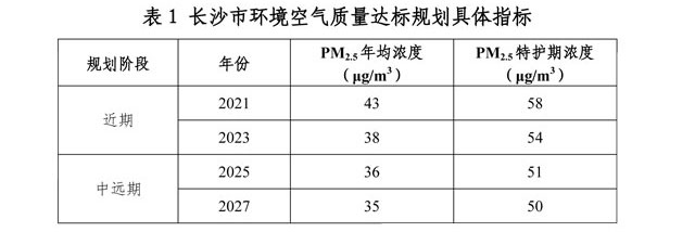 規(guī)劃目標(biāo):長沙市PM2.5年均濃度在2027年達(dá)標(biāo)。近期規(guī)劃到2023年,PM2.5平均濃度有效降低,力爭臭氧年均濃度升高趨勢基本得到遏制,中遠(yuǎn)期規(guī)劃到2027年,實(shí)現(xiàn)PM2.5年均濃度達(dá)標(biāo),臭氧超標(biāo)風(fēng)險(xiǎn)顯著降低。具體分階段指標(biāo)如下: