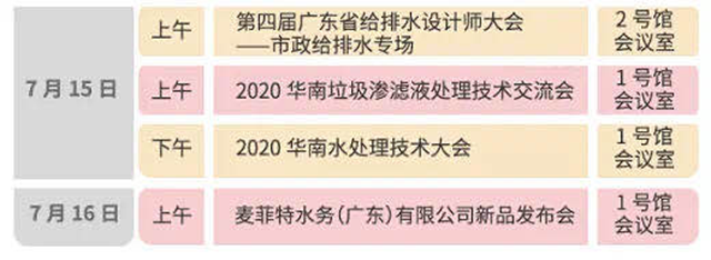 當(dāng)然,除以上會(huì)議以外,7月15日的2020華南垃圾滲濾液處理技術(shù)交流會(huì)、2020華南水處理技術(shù)大會(huì)、第四屆廣東省給排水設(shè)計(jì)師大會(huì)—市政給排水專場(chǎng)也期待大家的光臨。