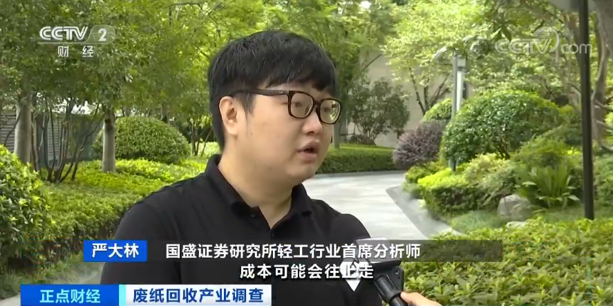 今年5月份,國家公布了2020年第七批限制進口許可證,前七批審批額度共計457萬噸,較2019年前七批同比下降44.55%,預計全年核發(fā)約500-600萬噸。分析人士認為,長期來看,伴隨外廢新規(guī)的逐漸消化,造紙行業(yè)競爭格局將得到改善,在國外建有生產基地的大型紙廠將會受益,原料價格高位震蕩后最終落回合理區(qū)間。國盛證券研究所輕工行業(yè)首席分析師 嚴大林:整個產業(yè)鏈所有的環(huán)節(jié),成本可能會往上走,這是一個短期非常明顯的、直接的后果;從長期來看,這個行業(yè)的競爭格局會逐步地變得更好,市場份額會逐步向大企業(yè)集中。