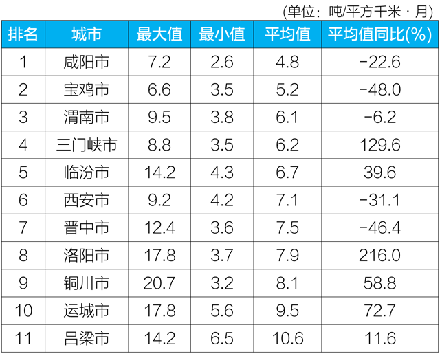 2020年6月汾渭平原11城市降塵監(jiān)測結(jié)果