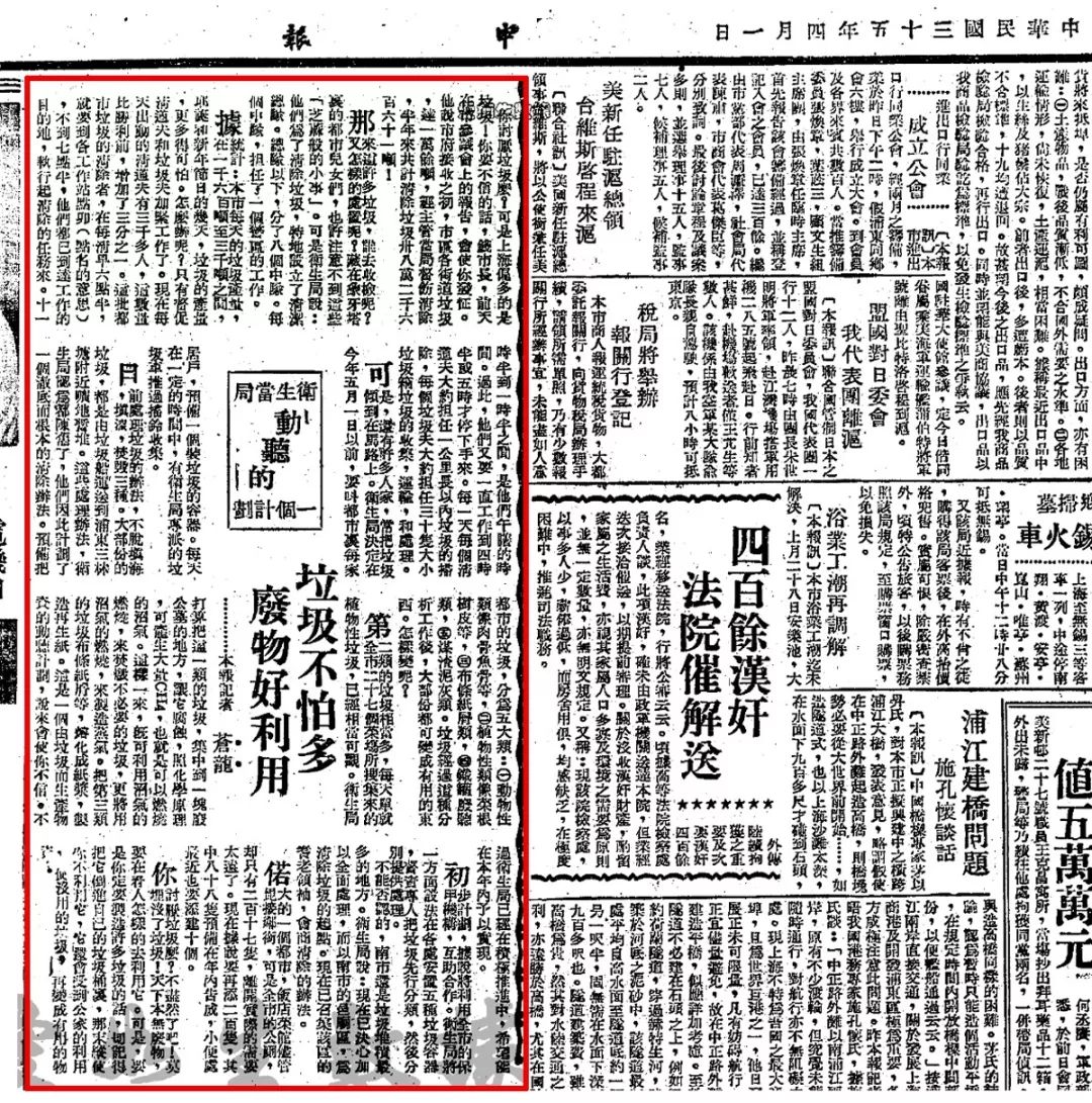 而在1946年4月1日《申報(bào)》上這則市衛(wèi)生局規(guī)劃內(nèi)容中則對(duì)“垃圾分類”有了明確的規(guī)劃愿景。