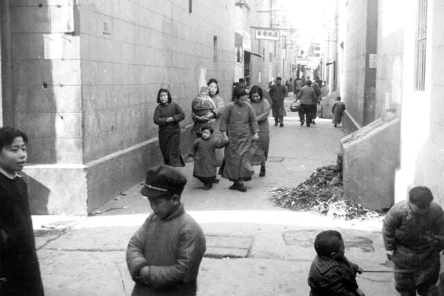 20世紀(jì)40年代,上海某弄堂中的情景。圖中可見每個(gè)支弄口都有垃圾箱,但維護(hù)較差,環(huán)境堪憂