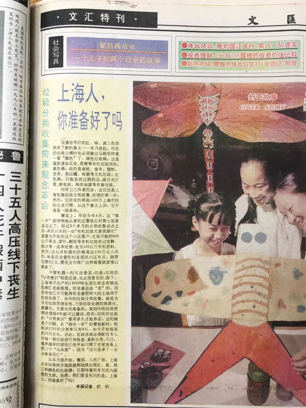 1996年8月17日《文匯報(bào)》文匯特刊版面刊載“垃圾分類收集帶來(lái)觀念革命 上海人,你準(zhǔn)備好了嗎?”