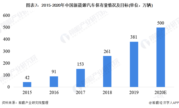 截至2019年底,全國新能源汽車保有量達381萬輛,占汽車總量的1.46%,與2018年底相比,增加120萬輛,增長46.05%。其中,純電動汽車保有量310萬輛,占新能源汽車總量的81.19%。從統(tǒng)計情況看,近五年新能源汽車保有量年均增加180萬輛,呈加快增長趨勢。在技術(shù)進步、政策支持、資本青睞、基礎(chǔ)設(shè)施建設(shè)日益完善、消費者環(huán)保觀念逐步增強與清潔能源產(chǎn)品消費看漲的綜合作用下,我國計劃于2020年實現(xiàn)500萬輛的新能源汽車保有量目標有望實現(xiàn)。