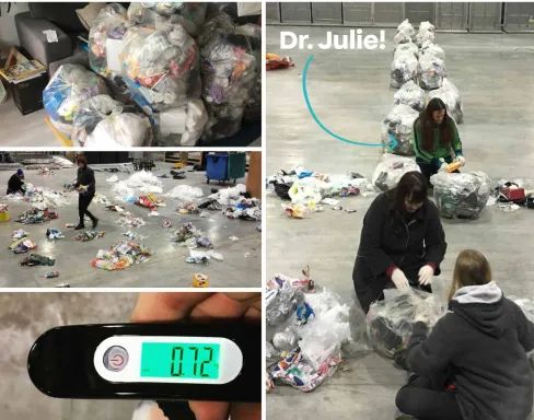 塑料垃圾分類記錄現(xiàn)場,右圖中綠衣者為茱莉·施耐德博士