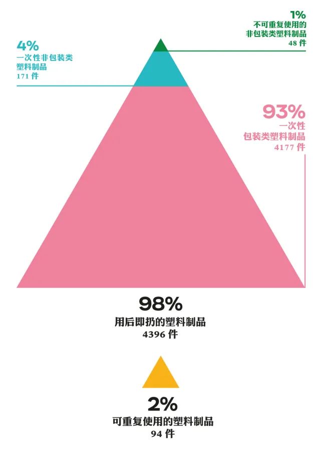 更驚訝的是,這些垃圾中有98%是用戶即扔的塑料制品!
