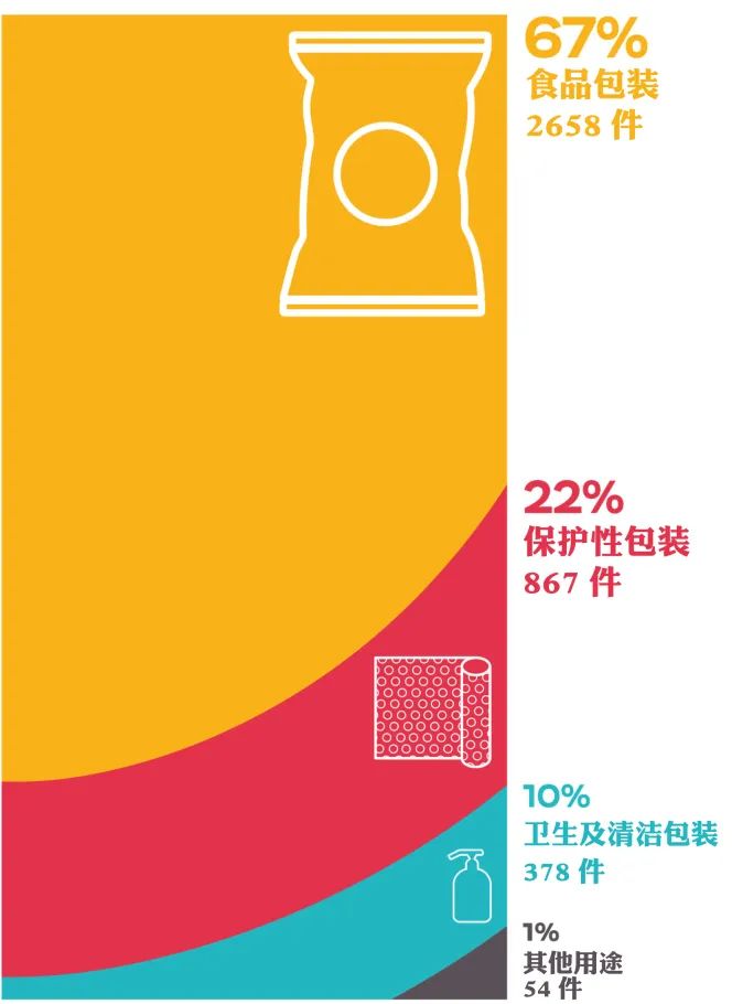 在所有一次性包裝類塑料制品中,67%為食品包裝,22%為保護性包裝,10%為衛(wèi)生及清潔包裝。
