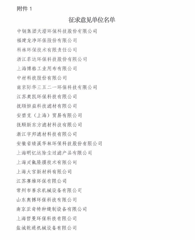 原標題:關(guān)于征求中國環(huán)境保護產(chǎn)業(yè)協(xié)會標準《袋式除塵器 濾袋技術(shù)要求(征求意見稿)》意見的函
