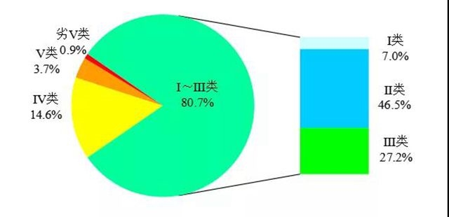 圖2 2020年1-7月全國(guó)地表水水質(zhì)類(lèi)別比例