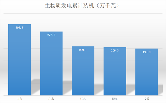 就像上圖所表現(xiàn)的,東部沿海和廣東地區(qū)生物質(zhì)能發(fā)展情況較好。據(jù)悉,截至2019年底,山東省生物質(zhì)發(fā)電裝機(jī)容量超過300萬千瓦,廣東省也有近240萬千瓦。