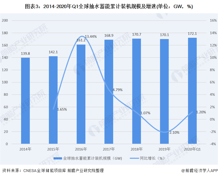 抽水蓄能行業(yè)現(xiàn)狀 2019年裝機(jī)規(guī)模為170.1GW