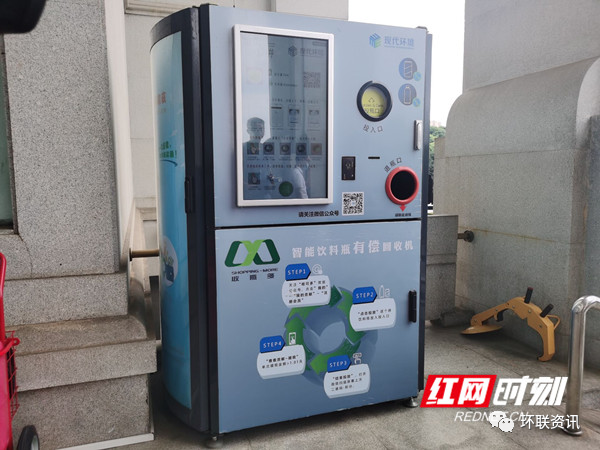 市直機(jī)關(guān)大院門(mén)口的智能回收箱。
