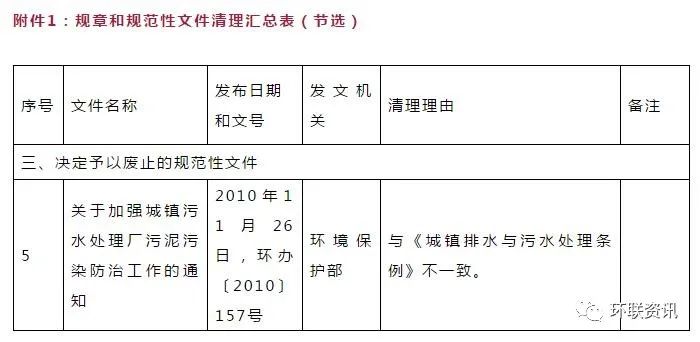 近日,生態(tài)環(huán)境部發(fā)布了《關于公開征求廢止、修改部分生態(tài)環(huán)境規(guī)章和規(guī)范性文件意見的函》,擬廢止2件規(guī)章、修改2件規(guī)章、廢止15件規(guī)范性文件。其中原環(huán)保部發(fā)布的《關于加強城鎮(zhèn)污水處理廠污泥污染防治工作的通知》(下稱通知)因與與《城鎮(zhèn)排水與污水處理條例》不一致,擬予以廢止,其中《通知》中規(guī)定的污水處理廠以貯存(即不處理處置)為目的將污泥運出廠界的,必須將污泥脫水至含水率50%以下的強制要求也隨之廢止!