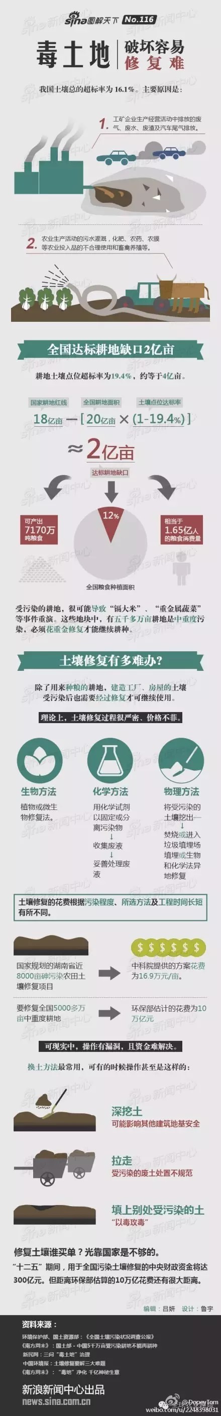 2016-12-09 全球農(nóng)業(yè)趣聞英媒稱,中國將展開全國性調(diào)查,以查明重金屬、化學(xué)物質(zhì)和其他有毒污染物熱點區(qū)域。目前中國正試圖清理土壤污染,這可能需要投入1萬億美元。