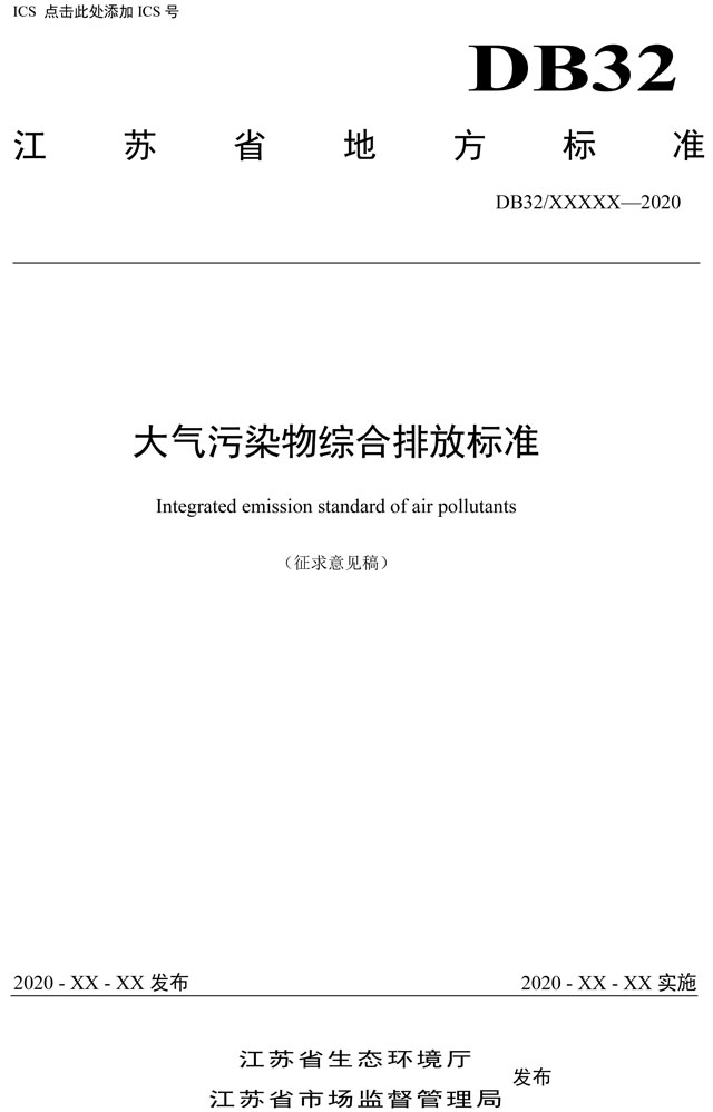 江蘇省大氣污染物綜合排放標準(征求意見稿)