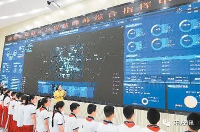 在河北省邯鄲市峰峰礦區(qū)智慧峰峰綜合指揮中心,春光小學(xué)的學(xué)生們參觀環(huán)保實時監(jiān)控。郝群英攝(人民圖片)