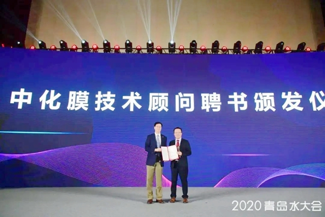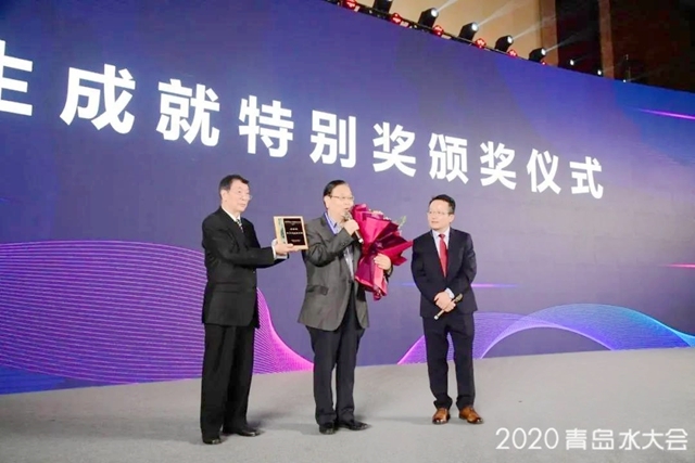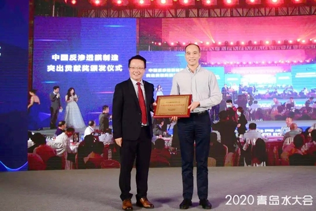 緊接著,大會組委會為了感謝時代沃頓科技有限公司多年來在水處理領(lǐng)域的深耕與貢獻(xiàn),特頒發(fā)“2020青島水大會-中國反滲透膜制造突出貢獻(xiàn)獎”。