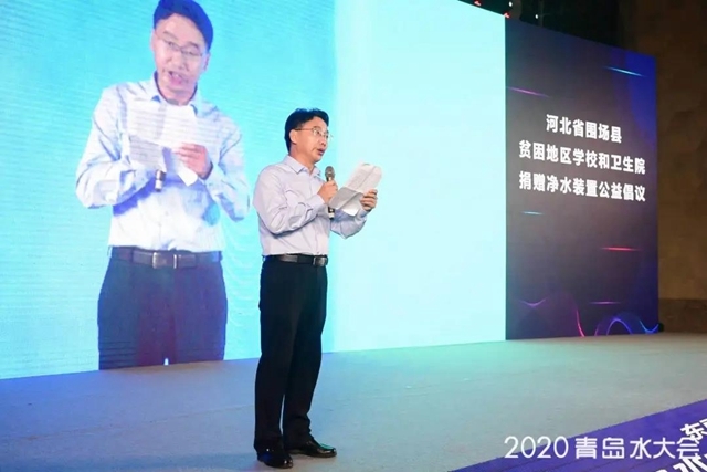 隨后,晚宴進(jìn)入“河北省圍場縣貧困地區(qū)學(xué)校和衛(wèi)生院捐贈凈水裝置公益倡議”環(huán)節(jié)。中國水利企業(yè)協(xié)會脫鹽分會醉心公益,每年都會舉辦“蓮花行動”,為國內(nèi)偏遠(yuǎn)地區(qū)、貧困地區(qū)、水質(zhì)差的地方送去甘甜。2020年是“蓮花行動”的第七個年頭。我們將繼續(xù)為河北省圍場縣貧困地區(qū)學(xué)校和衛(wèi)生院捐贈凈水裝置,用汗水澆灌收獲,以實干篤定前行。
