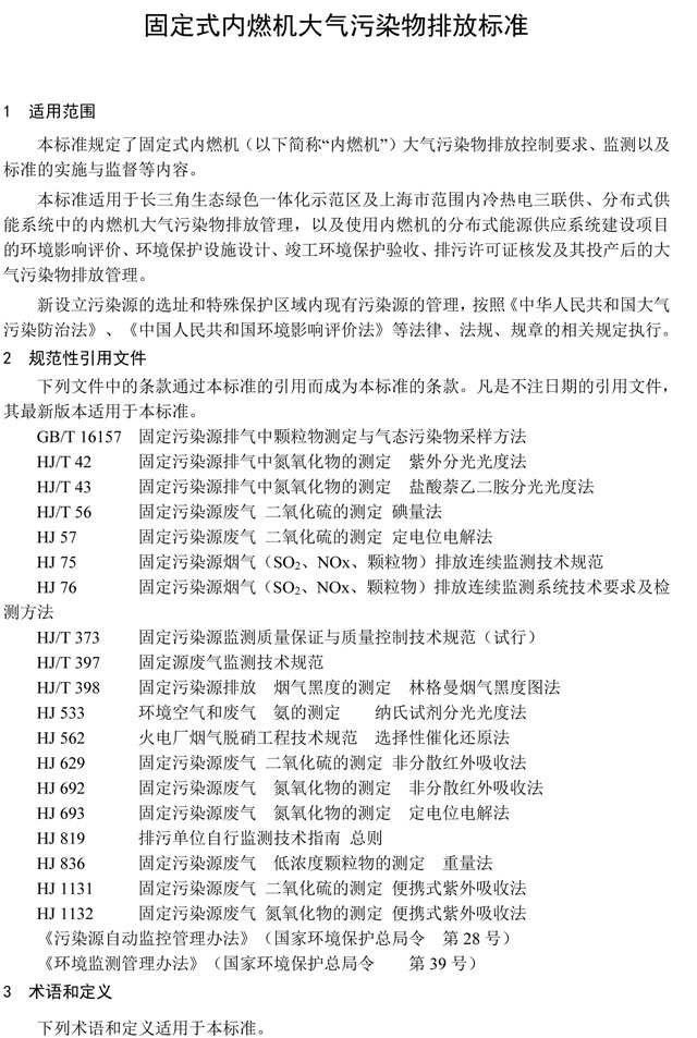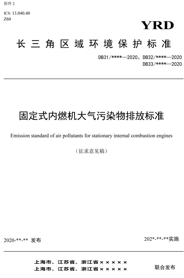 長(zhǎng)三角區(qū)域統(tǒng)一標(biāo)準(zhǔn):固定式內(nèi)燃機(jī)大氣污染物排放標(biāo)準(zhǔn)(征求意見(jiàn)稿)