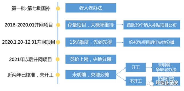 事實(shí)上,自從2018年6月第七批可再生能源電價(jià)附加資金補(bǔ)助目錄(主要收錄2015年-16年并網(wǎng)的項(xiàng)目)發(fā)布之后,國家就再也沒有發(fā)布第八批名單。也就是說,2016年至2020年1月20日這4年期間并網(wǎng)的存量項(xiàng)目并不屬于本次方案探討內(nèi)容。