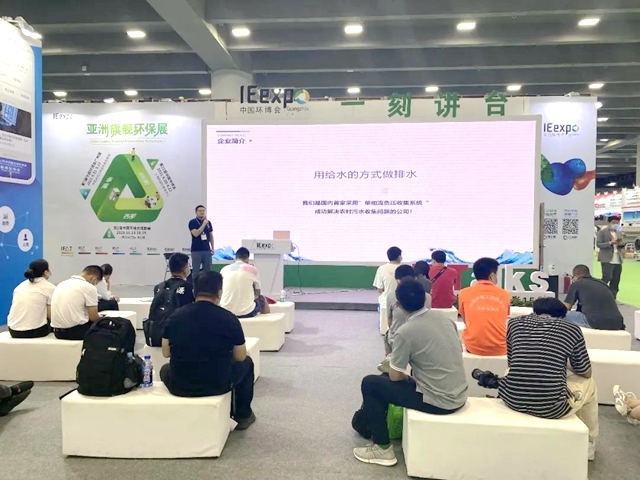 本次環(huán)博會(huì)技術(shù)交流大會(huì)上,上海在田技術(shù)經(jīng)理朱云峰就“單相流負(fù)壓排水技術(shù)在多場(chǎng)景的應(yīng)用”這一議題發(fā)表了演講,還與多位業(yè)內(nèi)專家進(jìn)行了技術(shù)交流。一番交流之后,各位專家紛紛對(duì)負(fù)壓排水技術(shù)在國(guó)內(nèi)應(yīng)用的前景給予了肯定。