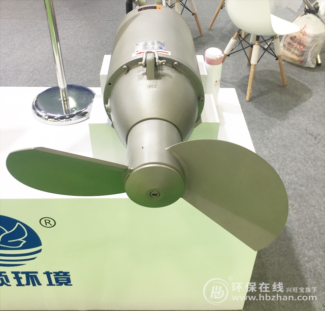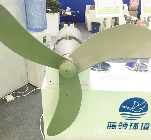 圖為廣州環(huán)博會(huì)期間 藍(lán)領(lǐng)環(huán)境攜MBBR填料專用推流器參展