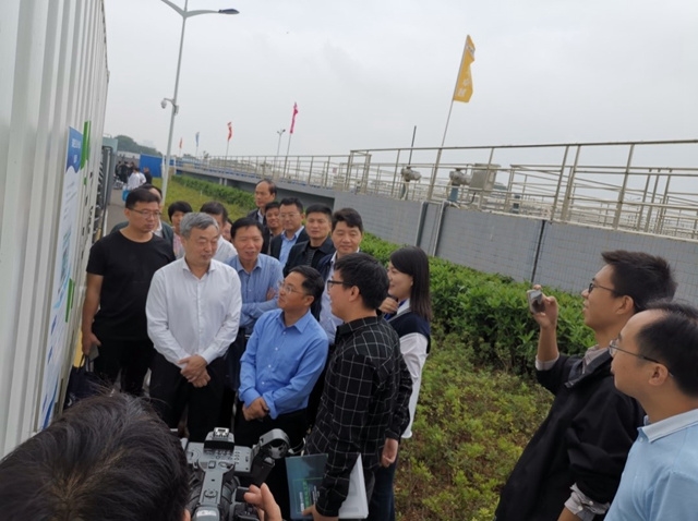 啟動(dòng)儀式后,各位領(lǐng)導(dǎo)專家考察了本次生活污水一體化設(shè)備測(cè)試活動(dòng)地點(diǎn)--長沙市聯(lián)泰水質(zhì)凈化有限公司(岳麓污水處理廠),易廳長、江處長蒞臨安力斯環(huán)境賽博集裝箱一體化設(shè)備現(xiàn)場進(jìn)行參觀指導(dǎo),并詢問了安力斯高級(jí)工藝工程師羅工一些具體的技術(shù)指標(biāo)問題,對(duì)安力斯的產(chǎn)品和技術(shù)給予了充分的肯定。