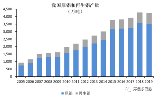 2019年國(guó)內(nèi)再生鋁產(chǎn)量達(dá)到725萬(wàn)噸,按照萬(wàn)噸再生鋁產(chǎn)值1.25億測(cè)算,19年再生鋁市場(chǎng)即達(dá)到900億。相比美國(guó)再生鋁產(chǎn)量占總產(chǎn)量的83%,我國(guó)目前再生鋁產(chǎn)量?jī)H占總量的17%左右,未來(lái)還有很大的市場(chǎng)空間。