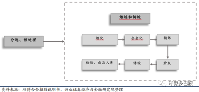 順博鋁合金2003 年成立于重慶合川,主營(yíng)再生鋁合金錠,在重慶、廣東清遠(yuǎn)、江蘇溧陽(yáng)擁有生產(chǎn)基地,2019年鋁合金錠產(chǎn)能達(dá) 40.27萬(wàn)噸,2020年8月在深交所中小板上市,當(dāng)前市值55億元。公司是國(guó)家標(biāo)準(zhǔn)《再生鑄造鋁合金原料》(GB/T 38472-2019)的起草單位,主要工藝包括分選、預(yù)處理和熔煉、鑄錠等。