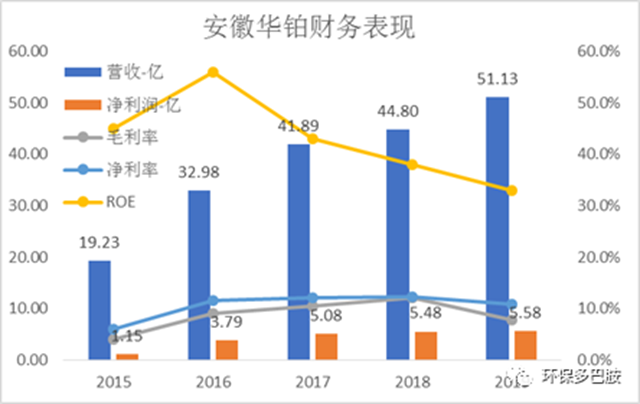 財(cái)務(wù)表現(xiàn)上:近三年公司業(yè)績(jī)穩(wěn)步增長(zhǎng),2016-18年三年復(fù)合增長(zhǎng)率21%,2018年實(shí)現(xiàn)營(yíng)收15.72億,凈利潤(rùn)0.5億。此外,公司毛利較高,經(jīng)營(yíng)活動(dòng)現(xiàn)金流凈額為正,且遠(yuǎn)高于凈利潤(rùn),表明公司在原料收取方面,掌握較大的主動(dòng)權(quán),能獲得較高處置費(fèi)。但公司凈利率較低,回看公司15年年報(bào),或許與公司管理費(fèi)用較高有關(guān)(2015年公司管理費(fèi)用率達(dá)14.6%,主要包括職工薪酬、修理費(fèi)增加、固定資產(chǎn)增加導(dǎo)致的折舊及攤銷(xiāo)增加、實(shí)施股權(quán)激勵(lì)增加的1000萬(wàn)元等),從而進(jìn)一步拉低了ROE表現(xiàn)。