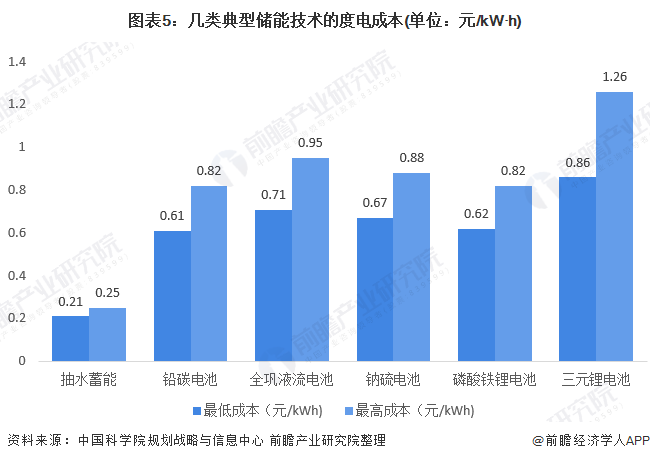 2、儲(chǔ)能技術(shù)以抽水儲(chǔ)能為首,因其度電成本最小