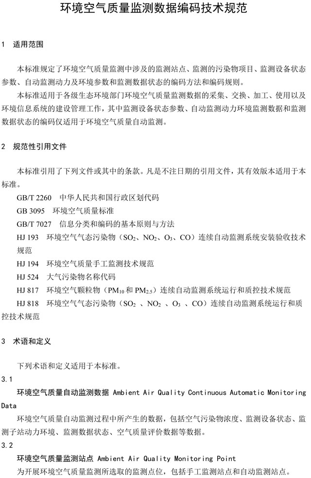 相關資料下載:環(huán)境空氣質量監(jiān)測數(shù)據(jù)編碼技術規(guī)范(征求意見稿).pdf