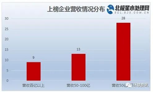 據(jù)統(tǒng)計,50強環(huán)境企業(yè)中營收過百億的共9家,13家環(huán)境企業(yè)營收在50億~100億之間,較去年增加4家;營收在50億元以下的有28家。