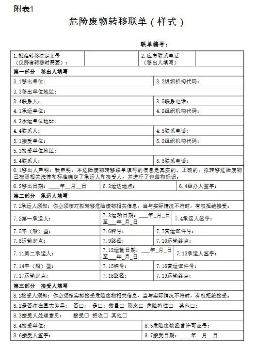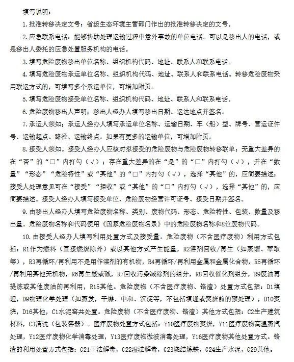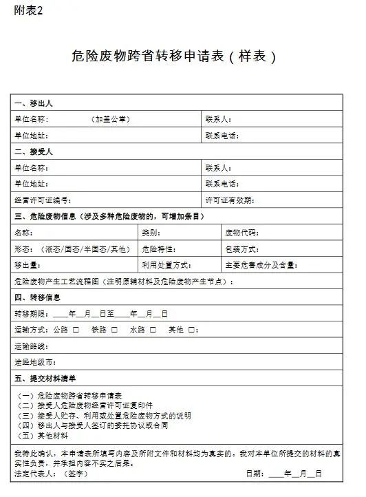 (一)危險(xiǎn)廢物跨省轉(zhuǎn)移申請表,格式見附表2。