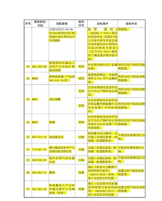 第四條 列入本名錄附錄《危險廢物豁免管理清單》中的危險廢物,在所列的豁免環(huán)節(jié),且滿足相應(yīng)的豁免條件時,可以按照豁免內(nèi)容的規(guī)定實行豁免管理。