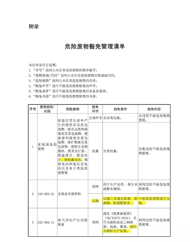 《名錄(修訂稿)》(二次征求意見稿)包括正文、附表《國家危險廢物名錄》、附錄《危險廢物豁免管理清單》。