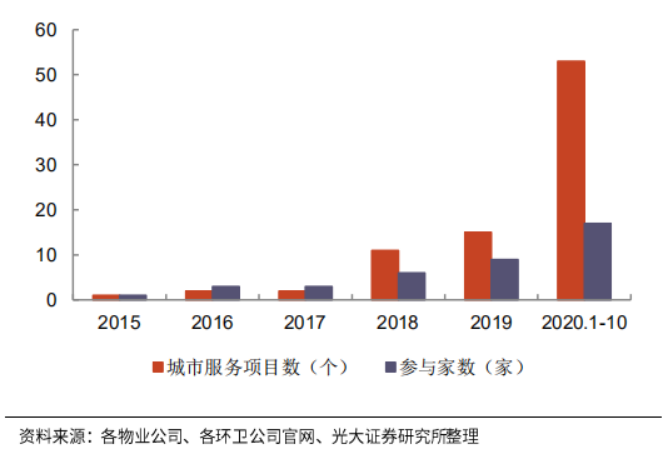 近年來,城市服務(wù)業(yè)務(wù)興起,城市服務(wù)項(xiàng)目的業(yè)務(wù)范圍通常比傳統(tǒng)的環(huán)衛(wèi)一體化業(yè)務(wù)更廣。