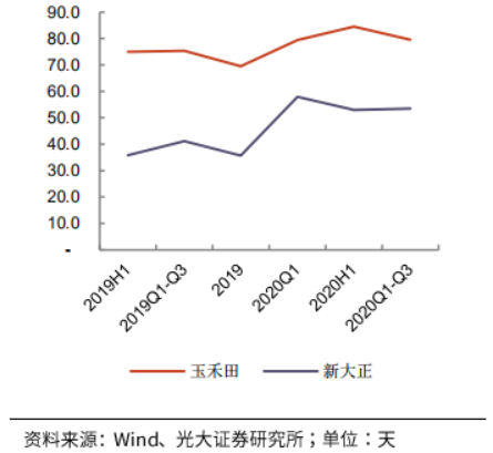 由于政府結(jié)算的因素,玉禾田和新大正的應(yīng)收賬款周轉(zhuǎn)天數(shù)在年終較低,年中較高。整體來看,玉禾田的應(yīng)收賬款和應(yīng)付賬款周轉(zhuǎn)天數(shù)都高于新大正,原因可能在于其“to G”業(yè)務(wù)占比更高,新大正一部分業(yè)務(wù)為“toB”業(yè)務(wù)。綜合來看,兩者凈營業(yè)周期相近,且表現(xiàn)出相似的變化趨勢(shì)。