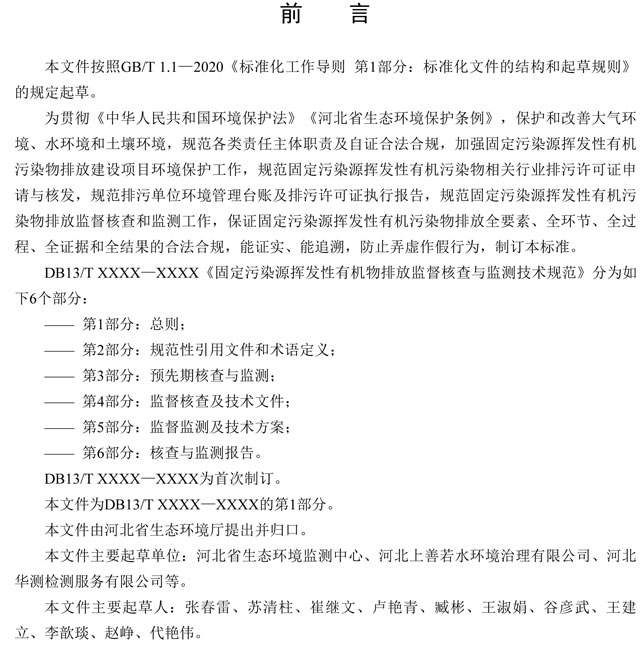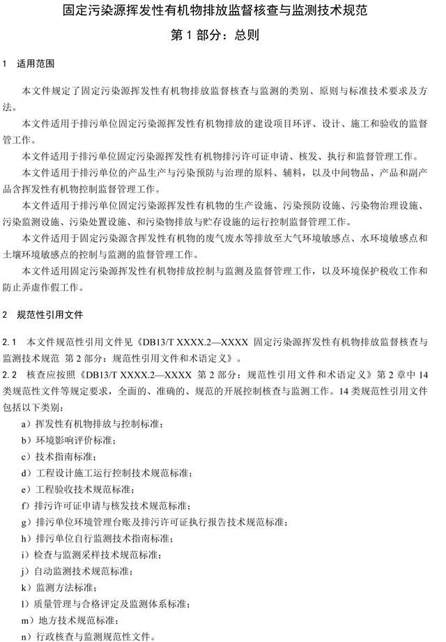 《固定污染源揮發(fā)性有機(jī)物排放監(jiān)督核查與監(jiān)測(cè)技術(shù)規(guī)范(征求意見稿)》總則