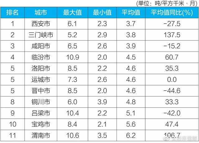 2020年10月汾渭平原11城市降塵監(jiān)測結(jié)果