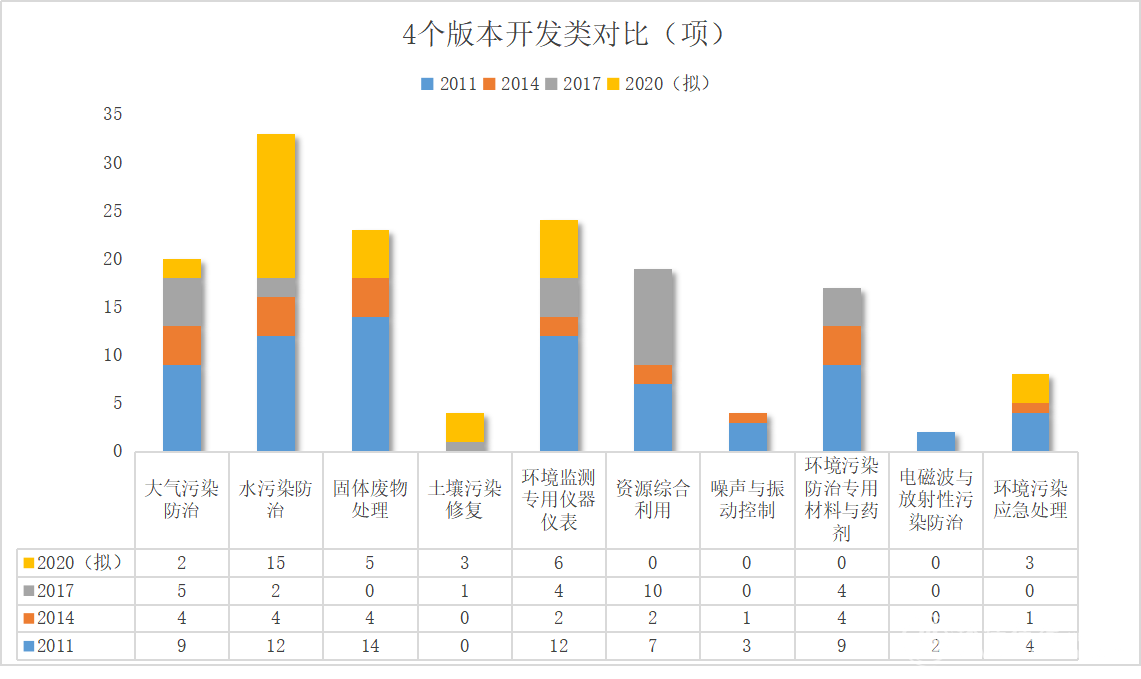 鑒于是鼓勵研發(fā)類別,也能間接反映我國對于水污染防治技術(shù)創(chuàng)新的需求還是很高的。另外在土壤污染修復(fù)方面,2020征求意見版相較前3個版本也有很大提升。以及,目前對應(yīng)急處理技術(shù)和裝備,也很重視。