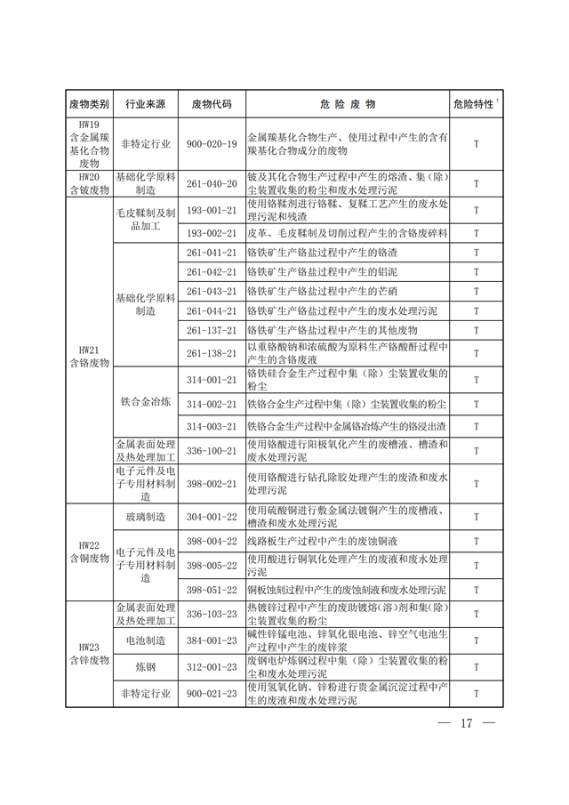 國家危險(xiǎn)廢物名錄(2021 年版)