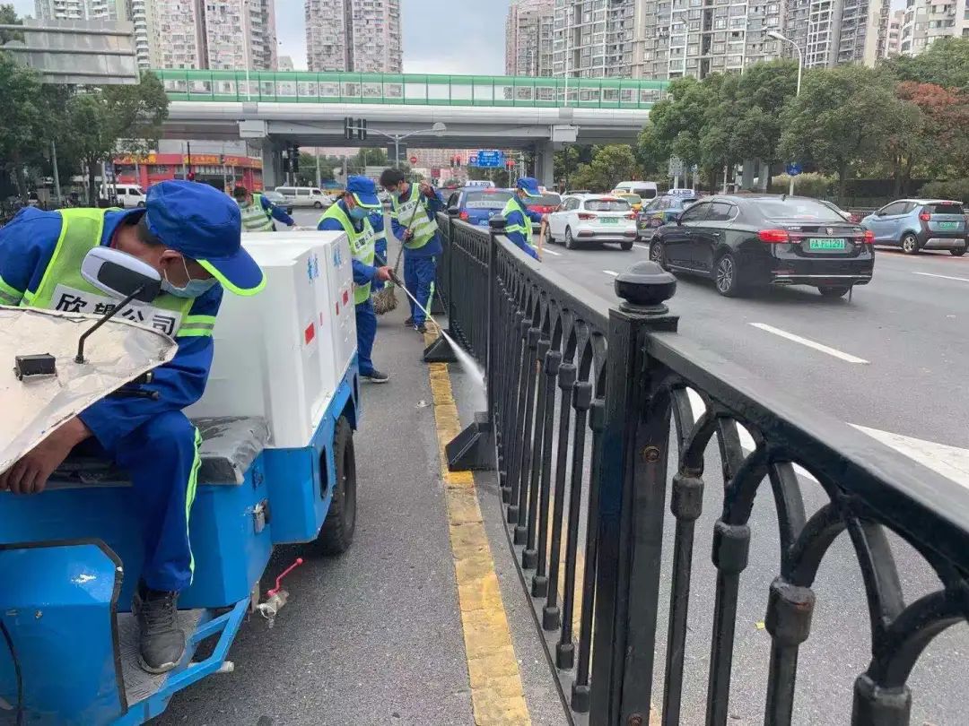 ●“特色”保障(升級版)。外灘起跑點中山東一、二路(外白渡橋—金陵東路,約1.2公里),實行電動手推式清掃車+雁式人工清掃+“鏈式”聯(lián)動機械作業(yè)法聯(lián)合作業(yè)模式,即待運動員起跑結束后在三個作業(yè)點依次按雁行隊列開展保潔。隨后,實行1組五車“鏈式”聯(lián)動機械作業(yè)?!捌諕摺保拔鼔m”,“灑水”,“精掃”,“沖洗”,“洗刷”。保潔要求:10分鐘內(nèi)將道路垃圾清理干凈。